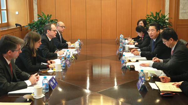 在會(huì)談中,申長(zhǎng)雨回顧了兩局合作歷史,自1996年中英兩局簽署合作諒解備忘錄以來(lái),雙方已經(jīng)在高層互訪、合作舉辦研討會(huì)、專利審查員交流等領(lǐng)域開展了廣泛而富有成效的合作。2013年12月,中英兩局在雙方國(guó)家領(lǐng)導(dǎo)人的見(jiàn)證下簽署了中英專利審查高速路(PPH)協(xié)議。今年,兩局還將在專利審查員交流、專利審查高速路(PPH)試點(diǎn)項(xiàng)目的啟動(dòng)、中英知識(shí)產(chǎn)權(quán)研討會(huì)和兩局局長(zhǎng)會(huì)議召開等方面展開合作。他表示,近年來(lái),中國(guó)高度重視知識(shí)產(chǎn)權(quán)事業(yè)發(fā)展,特別是中國(guó)共產(chǎn)黨十八屆三中全會(huì)明確提出要加強(qiáng)知識(shí)產(chǎn)權(quán)運(yùn)用和保護(hù),這為未來(lái)工作的開展指明了方向。“我們?cè)敢馀c英國(guó)知識(shí)產(chǎn)權(quán)局進(jìn)一步加強(qiáng)合作,推動(dòng)中英知識(shí)產(chǎn)權(quán)事業(yè)的發(fā)展,同時(shí),我們也希望與英方一同努力,共同推動(dòng)國(guó)際知識(shí)產(chǎn)權(quán)制度的發(fā)展和完善。”